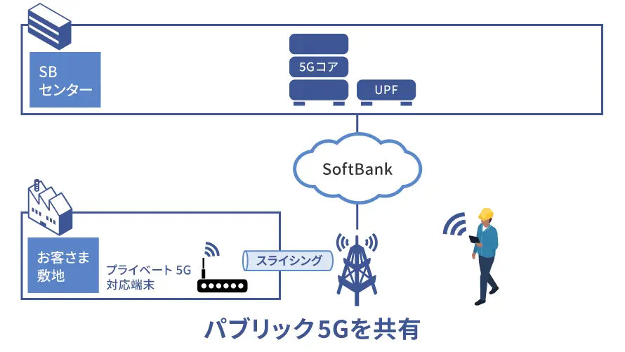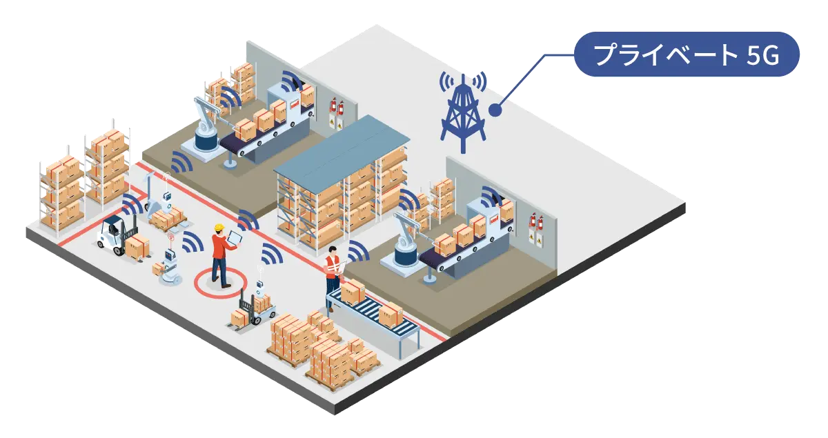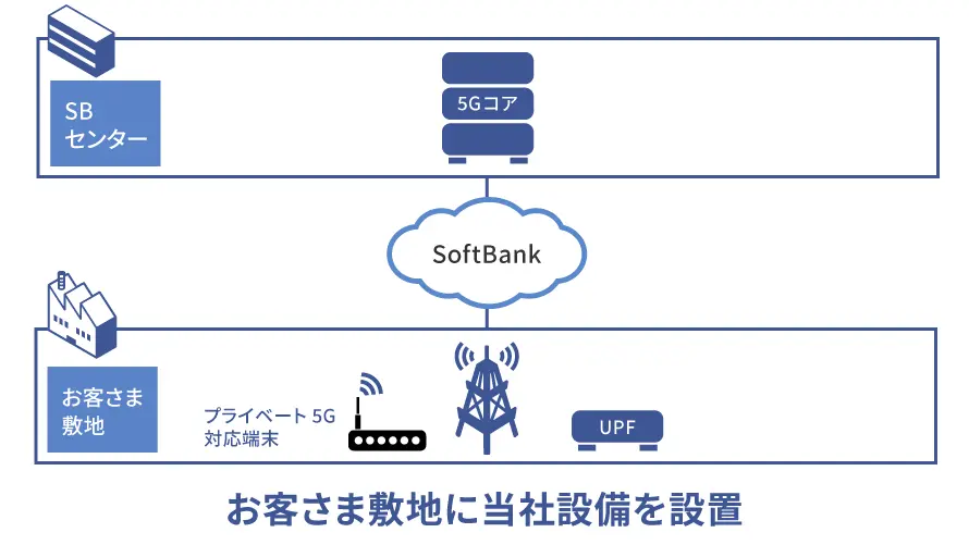 プライベート5Gは、企業・自治体ごとに個別に構築されるソフトバンクの周波数を活用したお客さま専用のプライベートな5Gネットワークのことです。