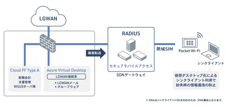 - 在宅勤務においてLGWAN接続系の業務を行いたい。αモデルを維持したまま、持ち出しPCからのリモート接続を実現したい。