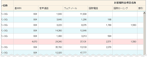 当社規定の料金項目又はお客さま料金項目別に請求額を表示します。