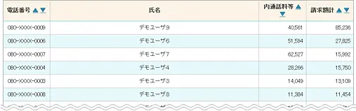 請求額の多い回線から順に上位50回線の請求額を表示します。