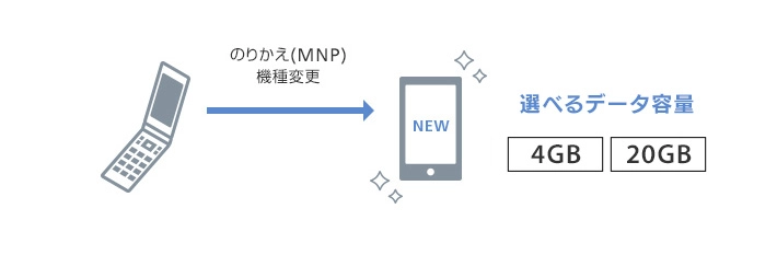 旧機種を継続利用して、「データプラン20GB(スマホ)」にご加入いただくことはできません。「データプラン4GB(スマホ)」「データプラン3GB(スマホ)」または「データ定額スマホデビュー」に加入しているお客さまは、「データプラン20GB(スマホ)」へのプラン変更を申し込むことができます。