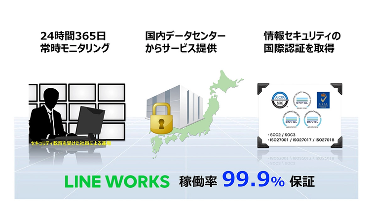 個人向けLINEと分離したLINE WORKS専用環境でサービスを提供いたします。