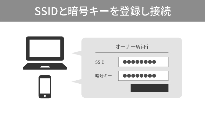 来店客用とは異なるSSIDや暗号キーを設定することで、従業員専用の業務用回線を手軽に構築できます。
