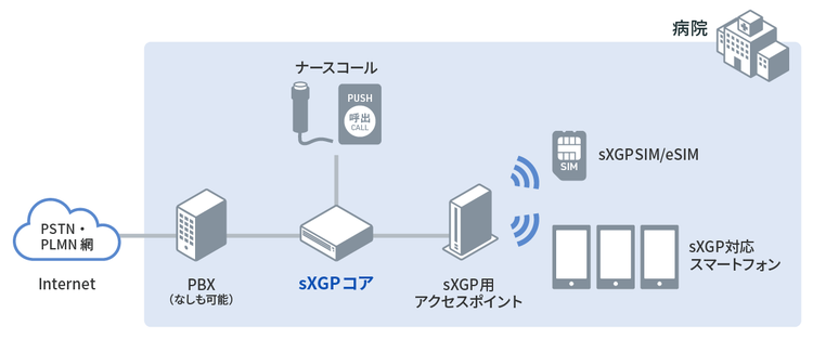 院内コミュニケーションに利用されてきたPHSの後継サービスとして期待されるのが、プライベートLTE sXGPです。