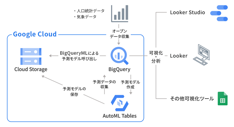 社内データとオープンデータを組み合わせ、BiqQuery でデータ予測