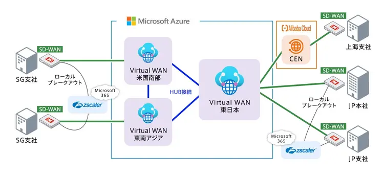 Azureを介して接続できるため海外現地のデータセンター不要。次世代の企業ネットワークを実現