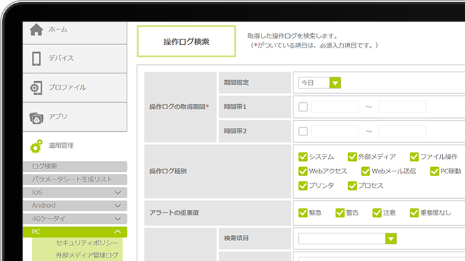 スマートフォンと同じ管理画面で操作できるPC(Windows、Mac)向けの必須セキュリティ機能を提供いたします。