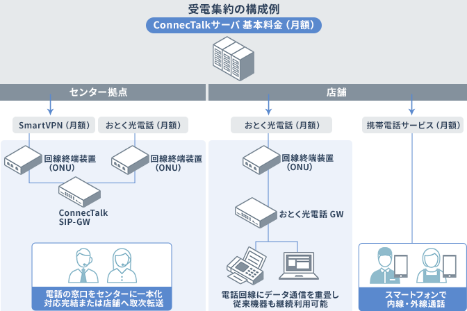 受電集約は店舗にかかってくる電話にコールセンターのオペレータが応答し、店舗従業員の負担を軽減できる仕組みです。