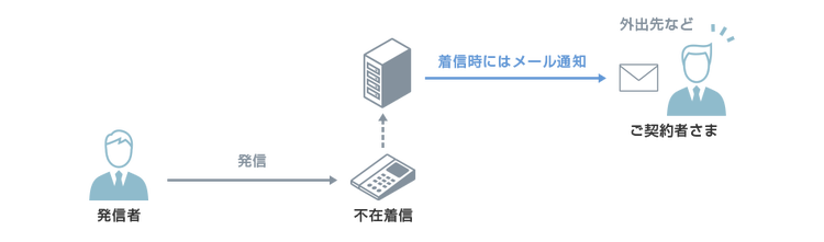 着信お知らせメールとは、電話に出られなかった場合、または事前に指定した電話番号からの電話があった場合に、指定したメールアドレスへ通知をするサービスです。