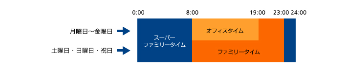 ファミリータイム (平日 19:00~23:00) (土・日・祝 8:00~23:00) |