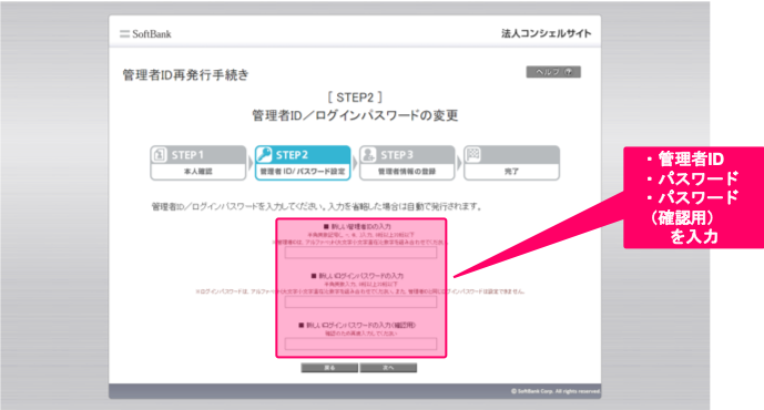 登録した管理者IDやパスワードがわからなくなった場合は、再発行のお手続きをしてください。