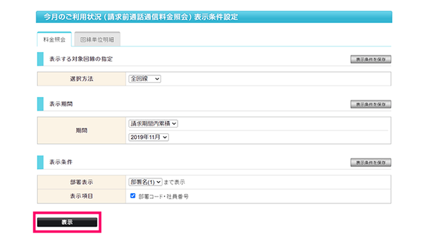ご希望の表示条件を設定し、「表示」ボタンを押します。