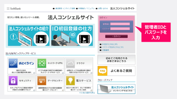 手順1 「法人コンシェルサイト」にログイン