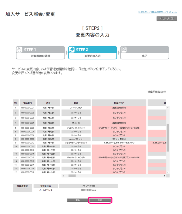 変更内容をご確認のうえ、「決定」をクリックします。