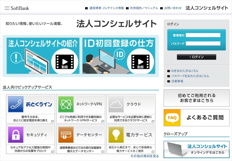 請求金額や契約内容を「法人コンシェルサイト」で確認