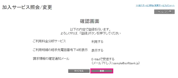 登録内容をご確認のうえ、「登録」をクリックします。