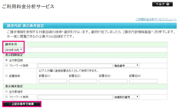 確認したい「請求年月」を選択し、「上記の条件で検索」をクリックします。