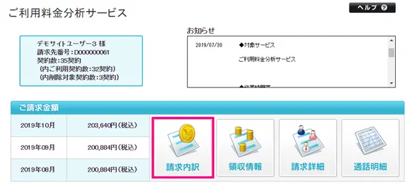 画面下の「請求内訳情報画面」をクリックします。