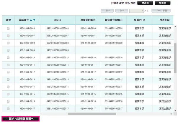 対象回線の一覧が表示されます。