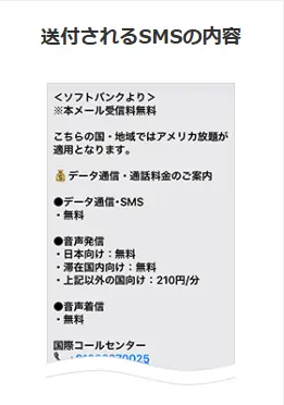 現地到着時にソフトバンクからSMSが届いたら「アメリカ放題」が自動的に適用されます。