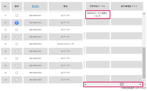 「世界対応ケータイ」加入確認方法