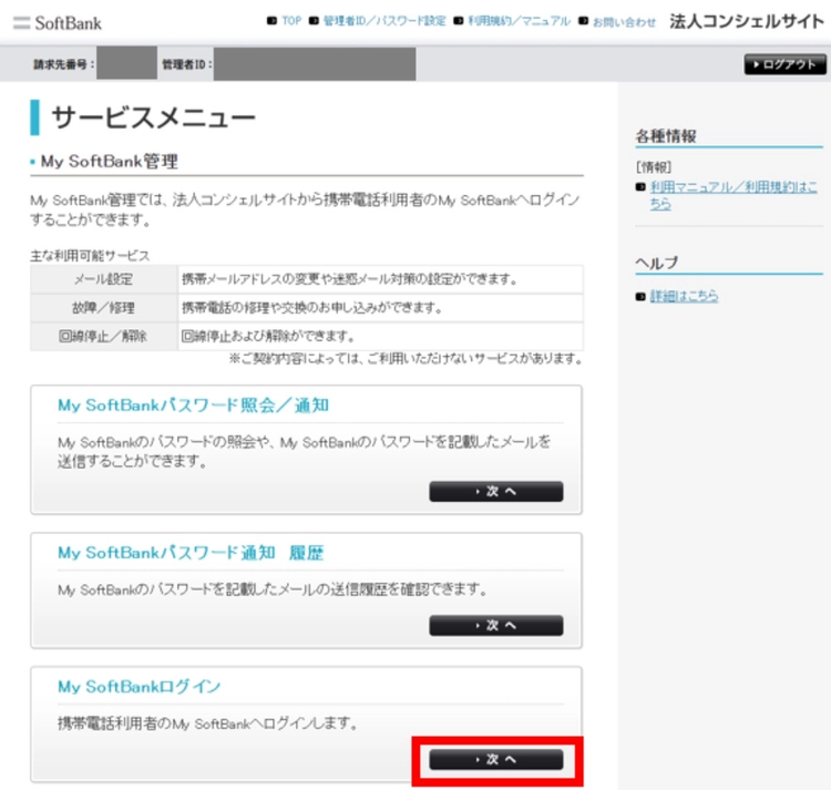 法人コンシェルサイト(My SoftBank)でのお手続き