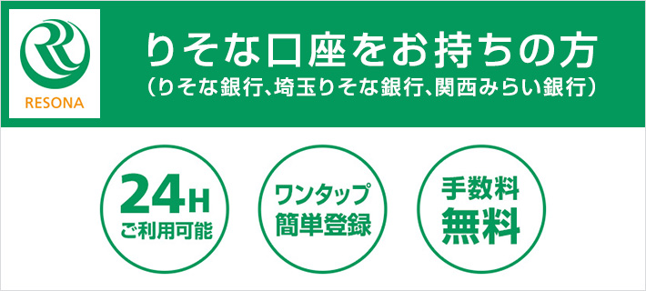 2.りそな銀行、埼玉りそな銀行、関西みらい銀行の口座をお持ちのお客さま