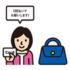 - 本カードは、店頭お支払い時の分割払い、リボ払い、ボーナス払いの指定はできません。「1回払い」以外を指定した場合お支払いできませんのでご注意ください。