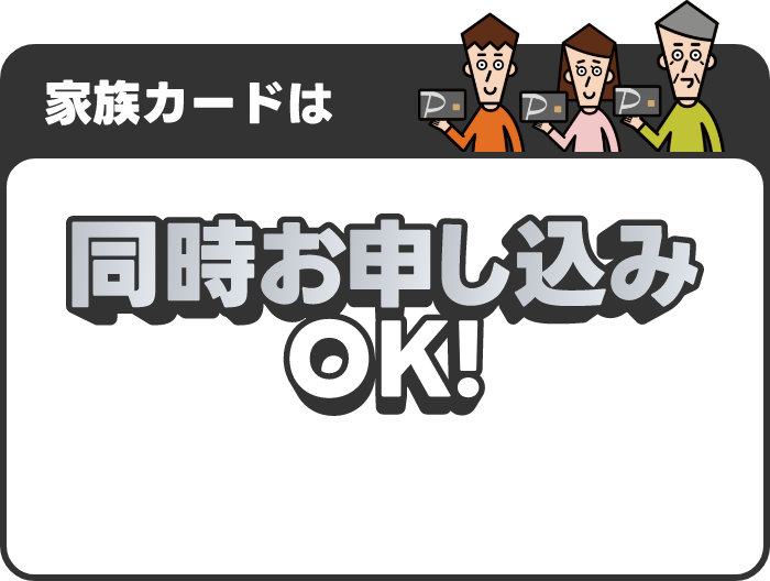 家族カードでのお支払いは、付与率が異なるものや対象外あり。詳細はこちら