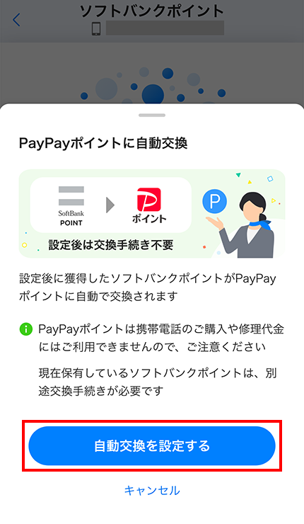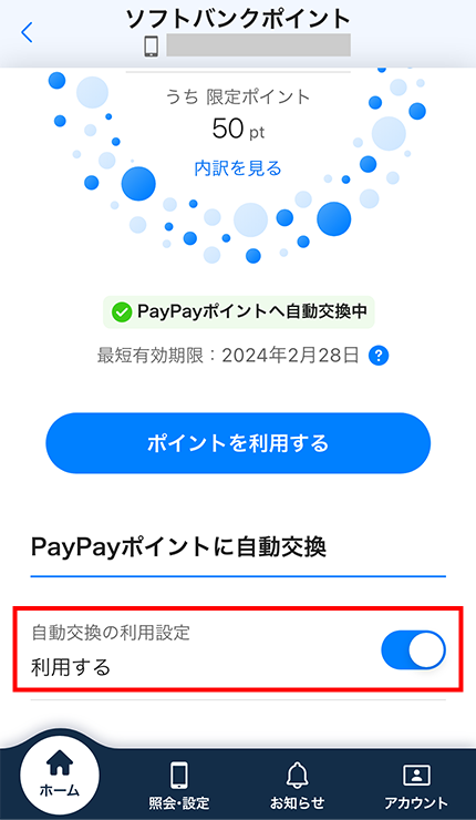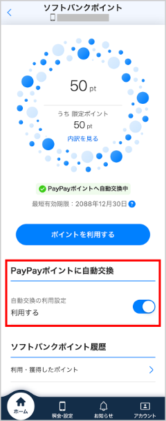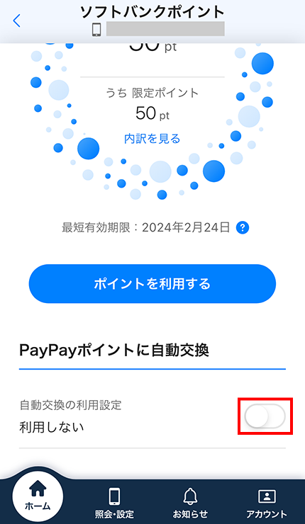 2自動交換設定を「利用しない」の右側のボタンを選択