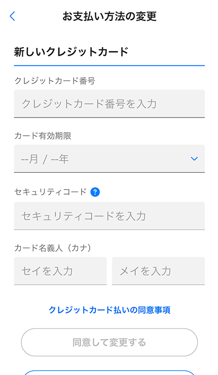 カード番号、セキュリティコード、有効期限の確認方法はこちら