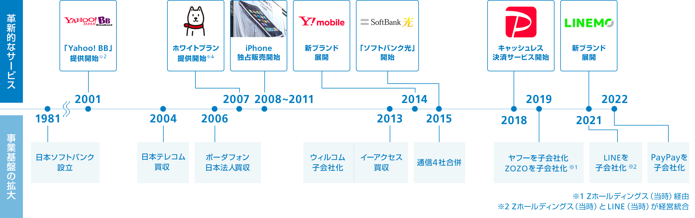 2019年以降、Zホールディングス※5、ZOZO、LINE※5、PayPayを子会社化し、現在では日本トップクラスの通信・ITサービスを提供する企業グループへと進化を遂げています。