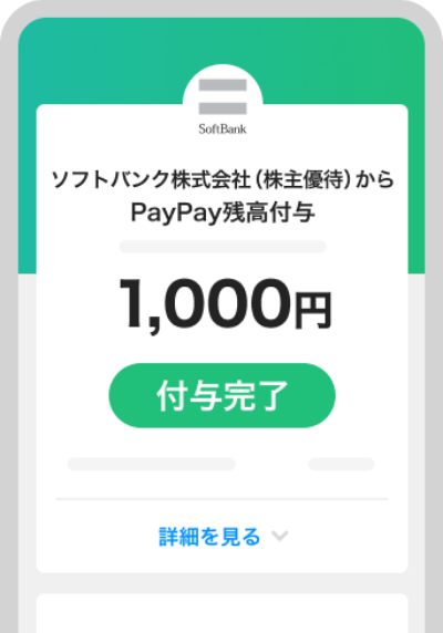 100株以上の保有につき、一律PayPayマネーライト1,000円分を進呈します。