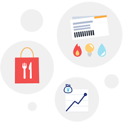 コンビニ、ドラッグストア、飲食店などさまざまな加盟店でご利用いただけます。