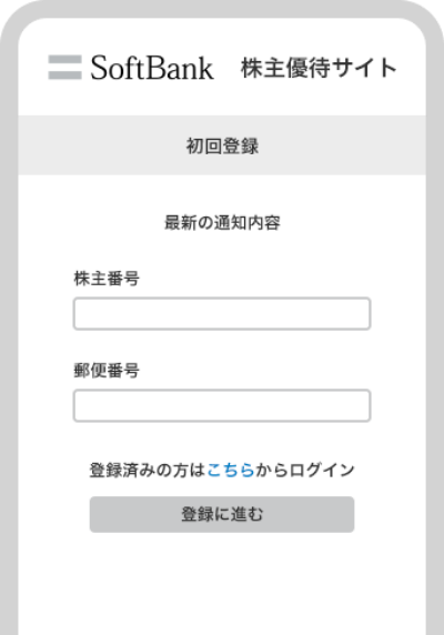 株主優待サイトに初めてログインする場合は、以下の通りご入力ください。