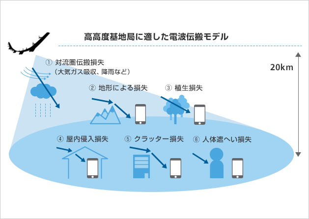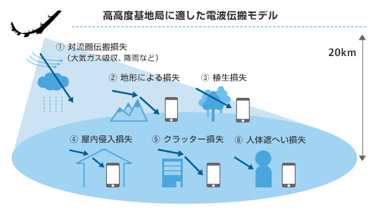 上空も含めた全ての屋外三次元空間をサービスエリアとする三次元空間セル構成技術を実現するための主な要素技術として、上空基地局(リピーター)、無線通信技術、上空基地局と地上セルラーネットワークの連携制御ネットワーク、三次元空間セル構成技術のセル設計を最適に行うための電波伝搬モデルの研究開発に取り組んでいます。また、国内外への貢献を目指し、研究成果の国際標準化を推進する活動も積極的に行っています。