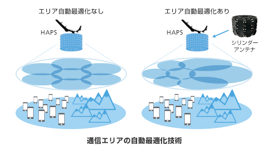 昨今、目覚ましい発展を遂げているドローンなどのUAV(unmanned aerial vehicle)を用いて数百m~20km上空に配置する上空基地局の実用化が期待されており、ソフトバンクでは、次世代のセルラー通信基盤技術として、これらの上空基地局と地上のセルラー通信ネットワークの連携により超広域低遅延通信を実現する三次元空間セル構成技術の研究開発を実施しています。