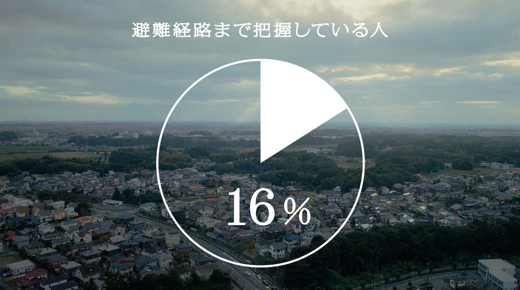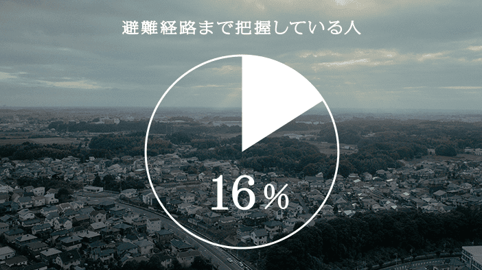 避難経路まで把握している人はわずか16%。避難場所へ向かうときに、道中に危険が潜んでいるかもしれません。そのためには、災害が起きても安全に移動できる避難「経路」も事前に確認しておく必要があります。