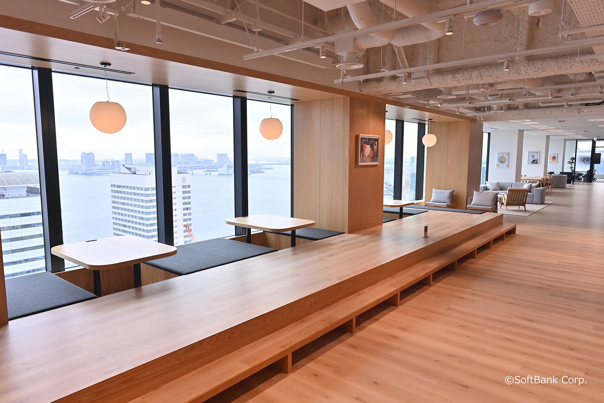 靴を脱いで上がるミーティングスペース。眺めのよい景色の中でお客さまと対話ができます。