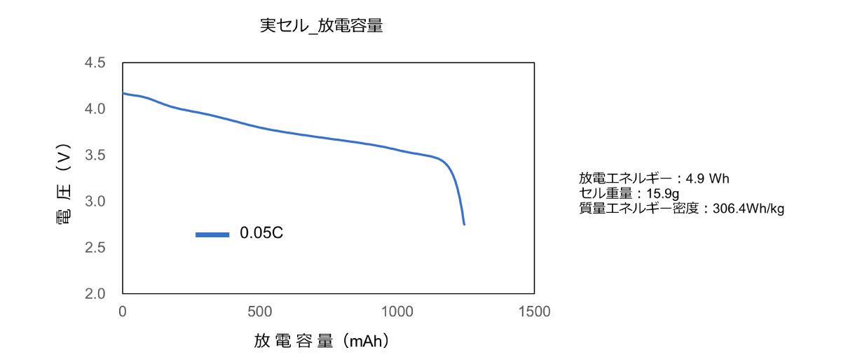 この数値は従来のリチウムイオン電池セルの最高値と同等の値となります。