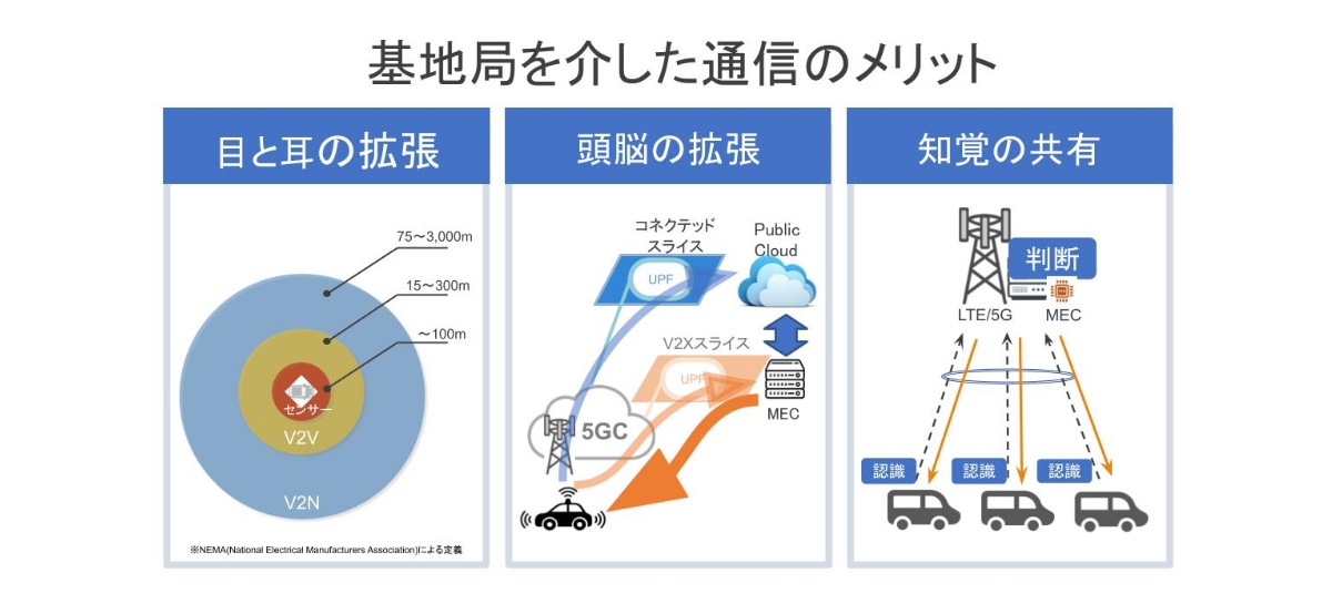 この検証では、車両単独では知り得なかった情報を交通インフラから取得することによって「目と耳の拡張」を行うと同時に、さまざまな情報をプラットフォームで集約して判断を行う「知覚の共有」の実現性やそれらによる効果を検証する予定です。