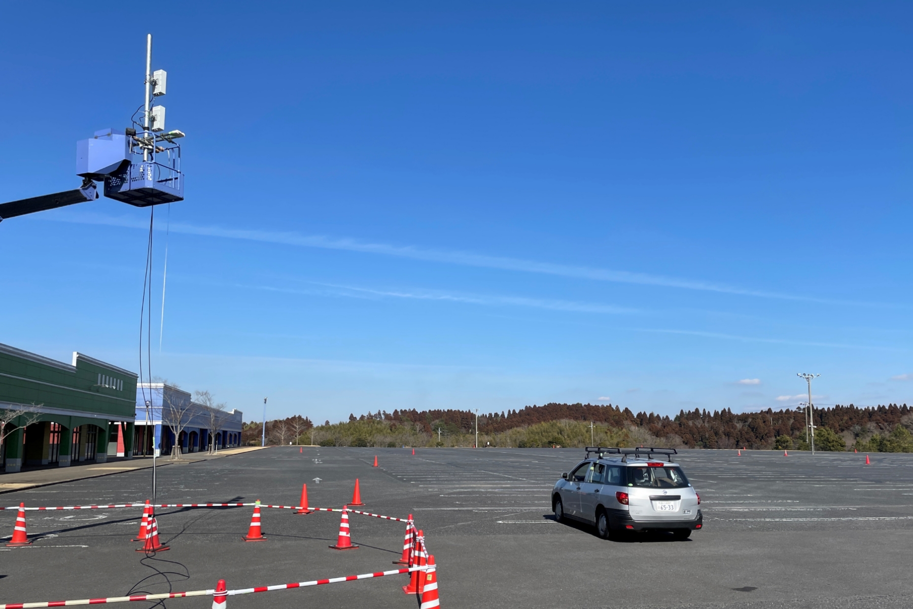 2022年に実施した屋外実験では、「センシングと通信の融合」の技術検証のため、高さ約8mのところに設置した基地局から5Gの変調信号を送信し、5G端末を搭載していない車や人からの反射波を受信して解析することでそれらの位置推定を行い、結果として誤差約2mの精度で車や人の位置情報を取得することに成功しました。