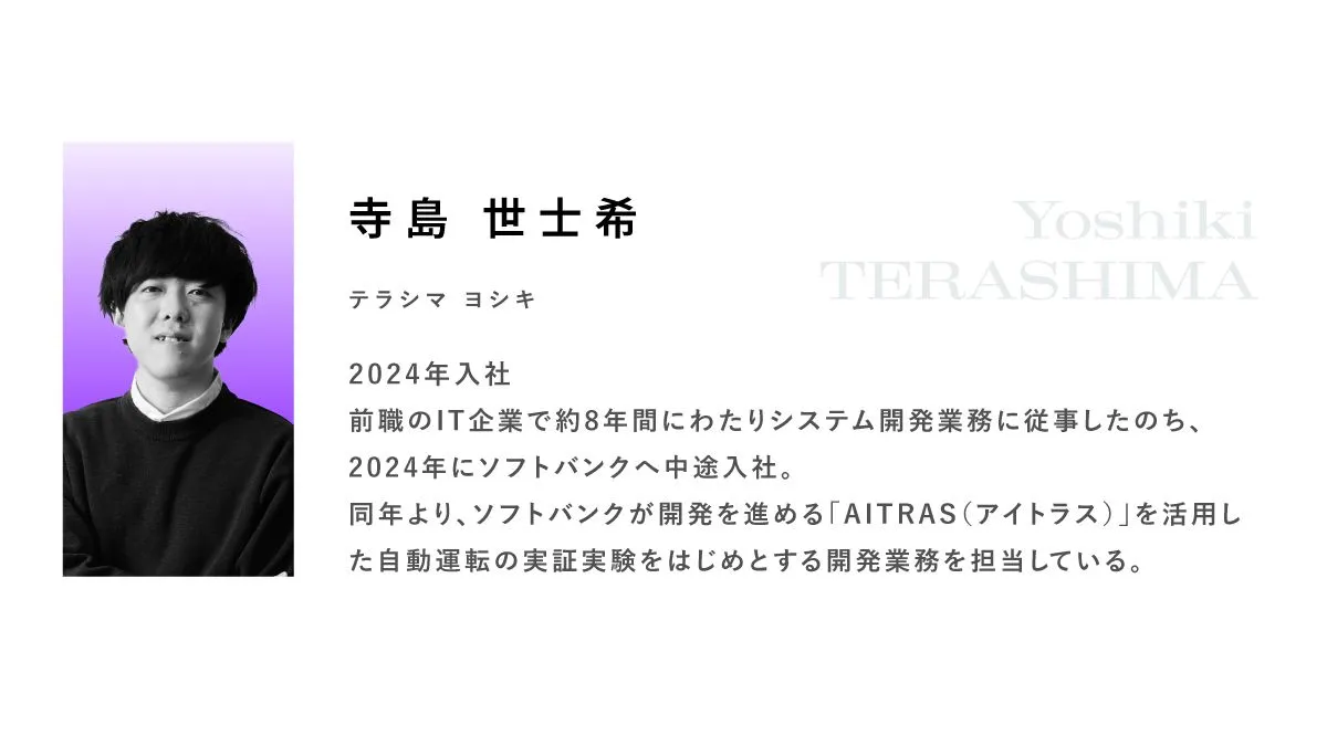 その後、技術を社会に届けるスケールを広げたいと考え、2024 年にソフトバンク株式会社へ転職し、先端技術研究所へ配属されました。