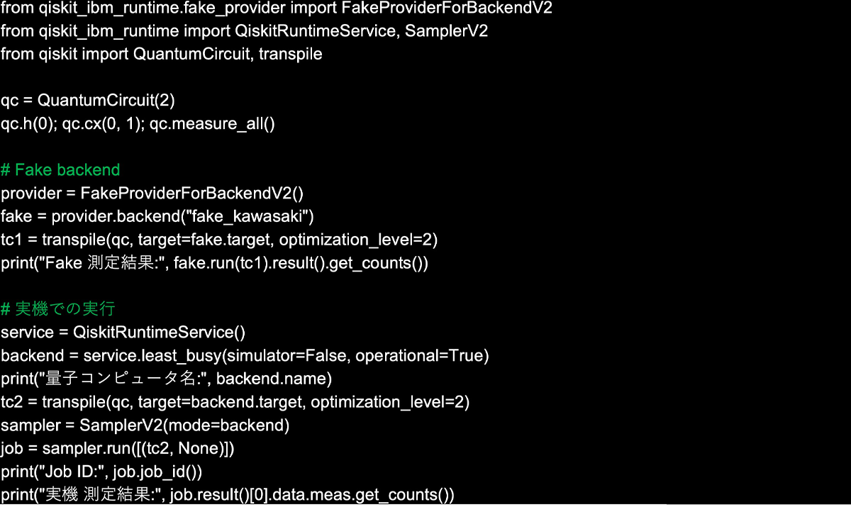 実機体験:Fake Backendで擬似実行 → IBM Quantum 実機にジョブ送信
