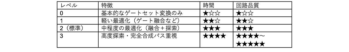 トランスパイル:最適化レベルの選択やAIトランスパイルで効率化