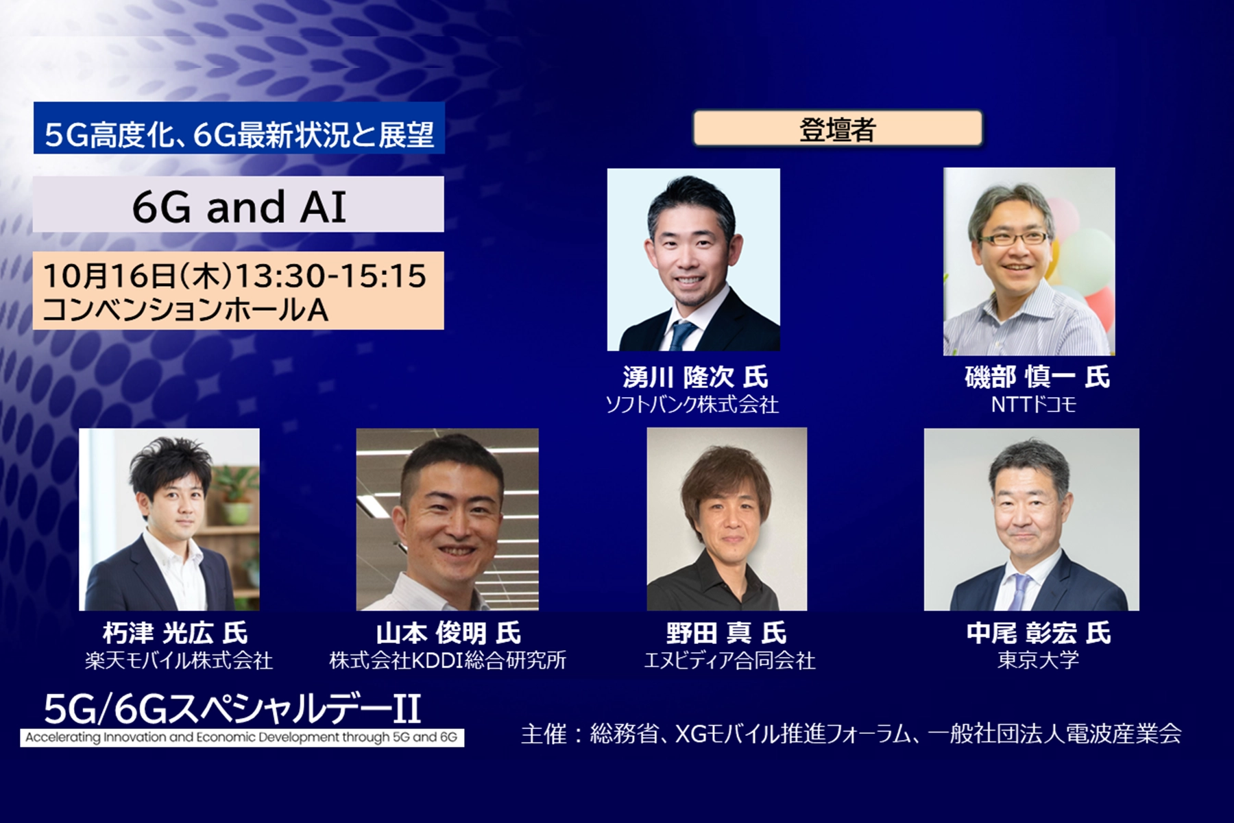 講演タイトル:「5G/6GスペシャルデーII Day2 ―5G高度化、6G最新状況と展望― セッション5 ~6G and AI~」