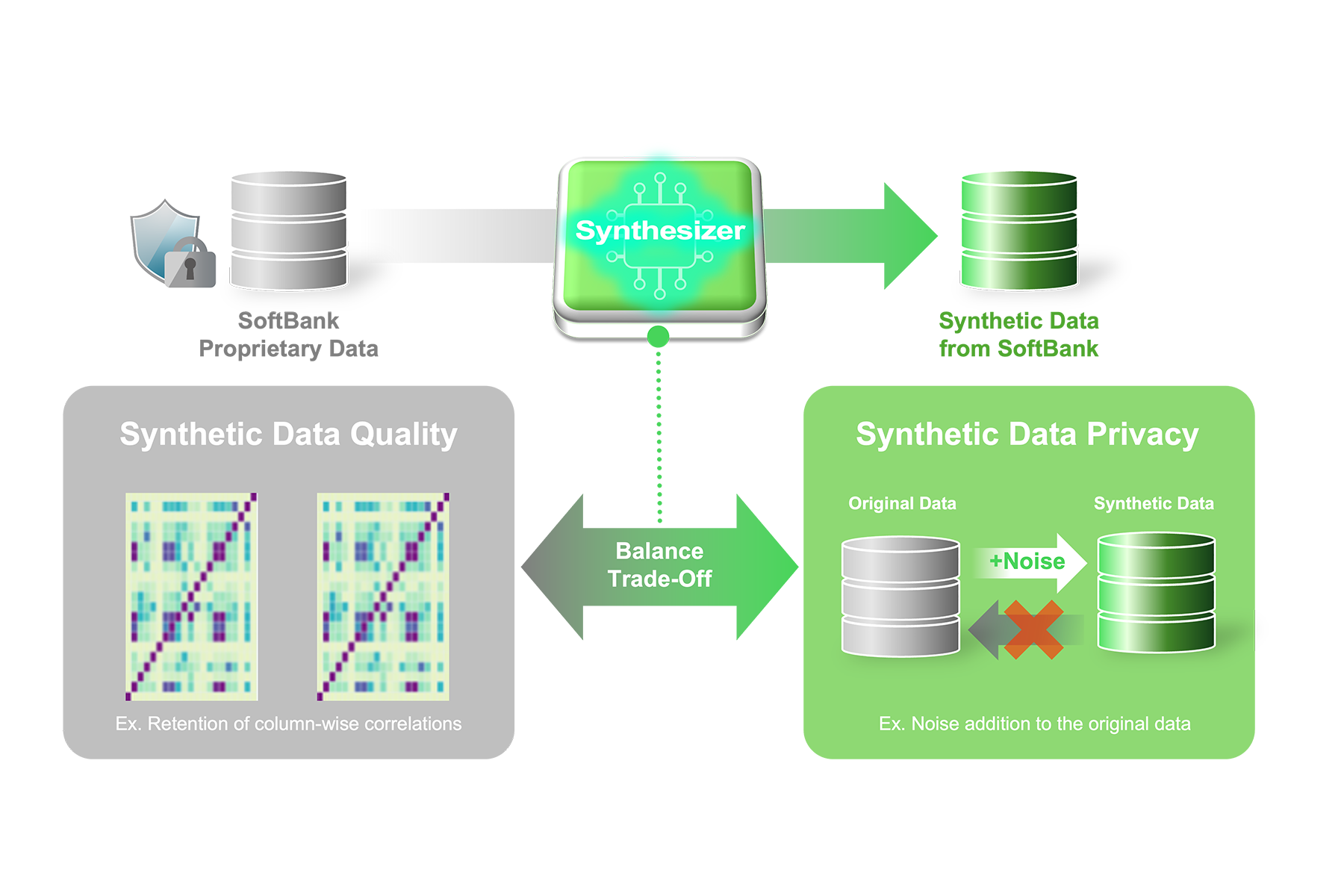 ソフトバンク株式会社は、通信業界向けの生成AI基盤モデル「Large Telecom Model」(LTM)※1において、通信ネットワークの運用などに関する機密性の高い情報を保護しながら安全かつ高精度な学習を可能にする、合成データ生成基盤を構築しました。この合成データ生成基盤は、差分プライバシー(Differential Privacy)※2に対応した合成データ生成ツールであるNVIDIA NeMo Safe Synthesizerを活用することで、データ品質の保持と機密情報の保護を両立し、安全性を担保した形でLTMの学習に利用することができます。