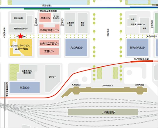 | 場所 | 丸の内仲通り 明治安田生命ビル前(以下図参照) |