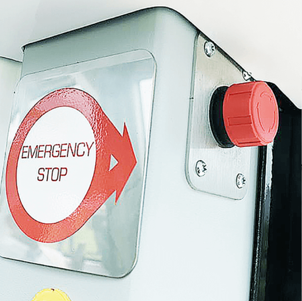 もしもの時は車両の前後についている、非常停止ボタンで停車可能。