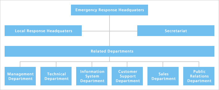 In the event of emergency situations such as major disasters, an Emergency Response Headquarters headed by the president will be established, and the departments in charge will collect and analyze information on the impact and damage in their areas of responsibility. An Emergency Response Headquarters will then be established based on the impact and damage, and will take action to rapidly restore the situation.
